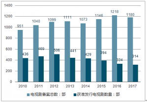 2010-2017年電視劇備案及獲準(zhǔn)發(fā)行數(shù)量情況