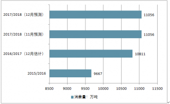 2015-2018年中國大豆消費(fèi)量