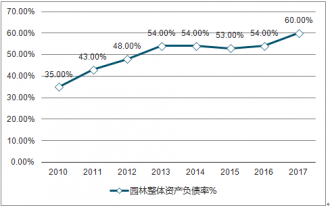 2010-2017年中國園林整體資產(chǎn)負債率走勢