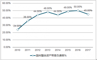 2010-2017年中國園林整體資產(chǎn)帶息負債率走勢