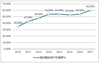 2010-2017年中國(guó)園林整體資產(chǎn)負(fù)債率走勢(shì)