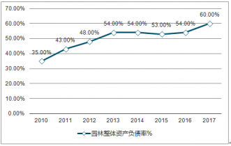 2010-2017年中國園林整體資產(chǎn)負(fù)債率走勢