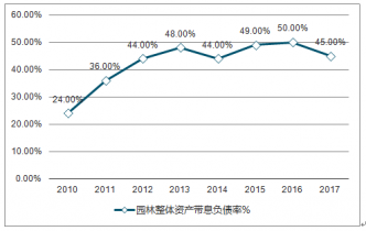 2010-2017年中國園林整體資產(chǎn)帶息負(fù)債率走勢