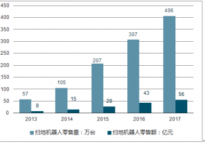 2013-2017年中國掃地機器人銷售量及銷售額走勢