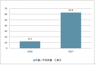 當前,我國機器人市場進入高速發(fā)展期,2017年市場規(guī)模約62.8億美元,2012-2017年平均增長率達到28%。