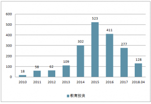 從融資數(shù)量看, 2018 年前 4 月數(shù)據(jù)同比增 80%,呈現(xiàn)逐步回暖趨勢(shì)。 分年度來看, 教育行業(yè)一級(jí)市場(chǎng)投資在 2014 至 2017 年保持高熱度。 2015 年達(dá)到頂峰 523 起,隨后兩年市場(chǎng)逐漸降溫,教育投資市場(chǎng)趨于冷靜。 2017 年以來, 教育投資大體呈現(xiàn)逐季度上升態(tài)勢(shì),教育投資逐漸回暖, 2018 年數(shù)據(jù)顯示出進(jìn)一步上升趨勢(shì), 前 4 個(gè)月同比增長(zhǎng) 80%。