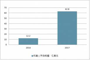 當前,我國機器人市場進入高速發(fā)展期,2017年市場規(guī)模約62.8億美元,2012-2017年平均增長率達到28%。