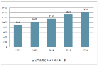 2012-2016年中國城市燃?xì)庑袠I(yè)企業(yè)單位數(shù)