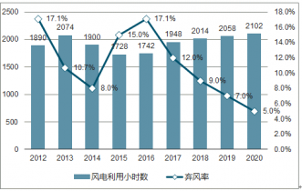 全國風(fēng)電利用小時(shí)數(shù)和棄風(fēng)率