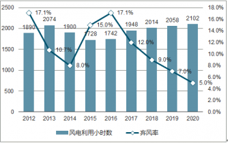 全國(guó)風(fēng)電利用小時(shí)數(shù)和棄風(fēng)率