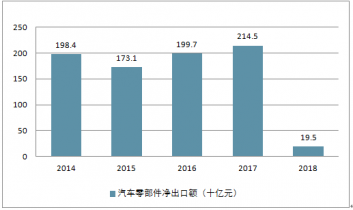 中國(guó)汽車零部件凈出口額(十億元)