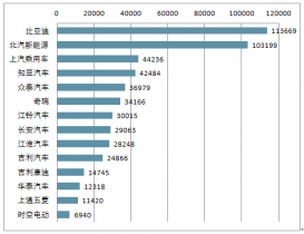 2017年,我國新能源乘用車銷售57.8萬臺(tái),占新能源汽車總銷量的74%。2017年新能源乘用車銷量排名前十的企業(yè)分別是:比亞迪、北汽新能源、上汽乘用車、知豆、眾泰、奇瑞、江鈴、長安、江淮、吉利。