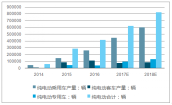 2017 年新能源車的國內(nèi)銷量有望超過71 萬輛,其中純電乘用車44.5 萬輛,純電客車7.8 萬輛,純電專用車9,9 萬輛,插電乘用車7.7 萬輛,插電商用車2.0 萬輛。