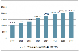 2010-2017 年長江上下游各省份水電裝機(jī)總量(萬千瓦)