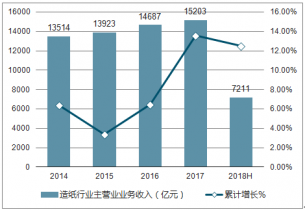 2014-2019年中國(guó)造紙行業(yè)主營(yíng)業(yè)業(yè)務(wù)收入及累計(jì)增長(zhǎng)走勢(shì)