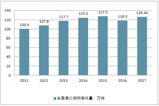 2011-2017年全國(guó)港口貨物吞吐量走勢(shì)