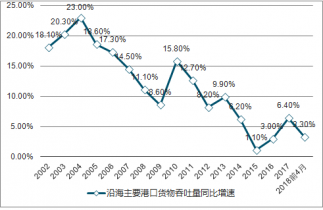 2002-2018.4月沿海主要港口貨物吞吐量同比增速