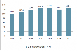 2011-2017年全國港口集裝箱吞吐量走勢