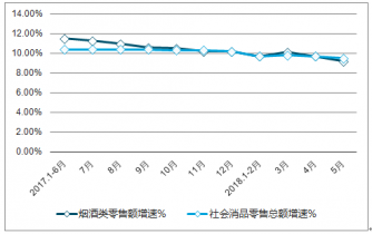 2017-2019年糧油、食品類零售額增速與社會消費品零售總額增速比較