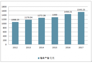 2012-2017年中國健身產(chǎn)業(yè)產(chǎn)值走勢(shì)
