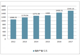 2012-2017年中國健身產(chǎn)業(yè)產(chǎn)值走勢