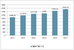 2012-2017年中國健身產(chǎn)業(yè)產(chǎn)值走勢