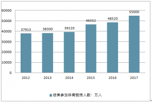 2012-2017年中國經(jīng)常參加體育鍛煉人數(shù)