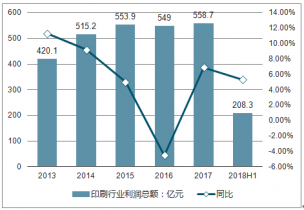 2016年印刷行業(yè)利潤總額同比減少4.5%。2017年利潤大幅增長,印刷和記錄媒介復制業(yè)實現(xiàn)利潤總額達到558.7億元,預計全年利潤總額將突破600億元。