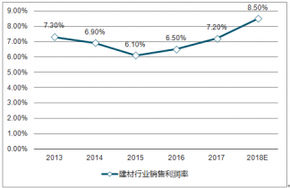 2017年我國(guó)建材行業(yè)銷售利潤(rùn)率達(dá)到7.2%,2019年上半年建筑行業(yè)銷售利潤(rùn)率8.2%,全年銷售利潤(rùn)率最高可達(dá)8.5%。