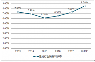 2017年我國(guó)建材行業(yè)銷售利潤(rùn)率達(dá)到7.2%,2019年上半年建筑行業(yè)銷售利潤(rùn)率8.2%,全年銷售利潤(rùn)率最高可達(dá)8.5%。