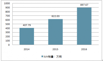 2014年我國SUV銷量為407.79萬輛,2015年增長至622.03萬輛,到2019年,達到897.67萬輛。