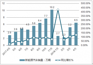 2019年新能源汽車產(chǎn)量達517235輛,銷量507125輛,同比分別增長1.5倍和1.5倍。其中,純電動車型產(chǎn)銷量分別完成417256輛和409331輛,同比增長分別為1.63倍和1.65倍。