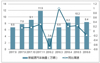 2019年6月,新能源汽車產(chǎn)銷分別完成8.6萬輛和8。4萬輛,比上年同期分別增長31.7%和42.9%;1-6月,新能源汽車產(chǎn)銷分別完成41.3萬輛和41.2萬輛,比上年同期分別增長94.9%和111.5%。