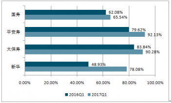 2017 年一壽險業(yè)務結構持續(xù)改善,期交和代理人渠道占比持續(xù)提升。2016 年的代理人渠道 保費占比分別是 65.5%、86.1%、84.0%和 65.3%,占比提升 3.5pct、-0.4pct、4.7pct 和 10.7pct,保險企業(yè)資源向不斷向代理人渠道集中傾斜。