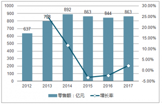 2012-2017年嬰幼兒配方奶粉市場(chǎng)零售額及增長(zhǎng)率走勢(shì)