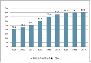 2009-2017年中國嬰幼兒奶粉行業(yè)產(chǎn)量走勢