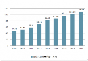 2009-2017年中國嬰幼兒奶粉行業(yè)需求量走勢