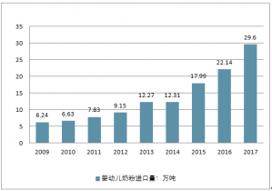 2009-2017年中國嬰幼兒奶粉行業(yè)進(jìn)口量走勢