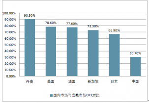 國(guó)內(nèi)市場(chǎng)與成熟市場(chǎng)CR3對(duì)比