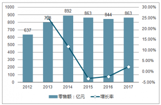 2012-2017年嬰幼兒配方奶粉市場(chǎng)零售額及增長(zhǎng)率走勢(shì)