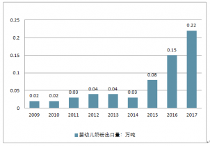 2009-2017年中國(guó)嬰幼兒奶粉行業(yè)出口量走勢(shì)