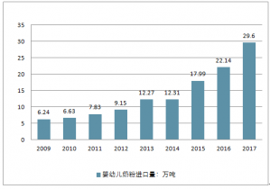 2009-2017年中國(guó)嬰幼兒奶粉行業(yè)進(jìn)口量走勢(shì)