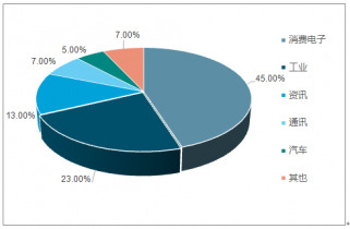 鋁電解電容器下游運用廣泛,主要運用于消費電子、通訊及汽車等領(lǐng)域。其中消費電子占比達(dá) 45%。從下游細(xì)分行業(yè)來看,大多數(shù)行業(yè)增長穩(wěn)定,同時新能源汽車及新能源發(fā)電有望成為未來需求主要增長點。