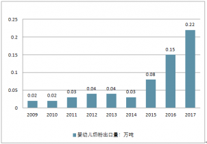 2009-2017年中國嬰幼兒奶粉行業(yè)出口量走勢