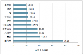 從線上品牌競爭力指數(shù)來看,競爭力前十的品牌分別是:固力果、惠氏、貝拉米、美素佳兒、卡洛塔妮、伊利、合生元、A2、雅培和美贊臣。其中,固力果以76.51的競爭力遙遙領先。