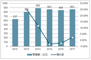 2012-2017年嬰幼兒配方奶粉市場零售額及增長率走勢