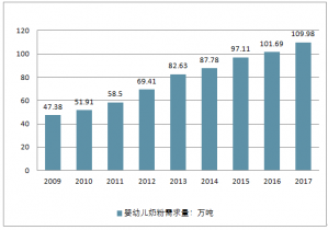 2009-2017年中國嬰幼兒奶粉行業(yè)需求量走勢
