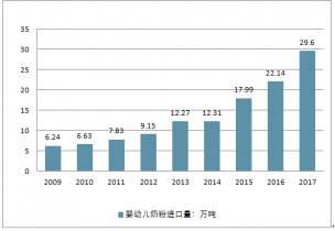 2009-2017年中國嬰幼兒奶粉行業(yè)進口量走勢