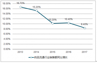 2013-2017年中國藥品流通行業(yè)銷售額同比增長走勢