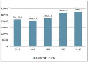 2014-2018年中國發(fā)動機產(chǎn)量走勢